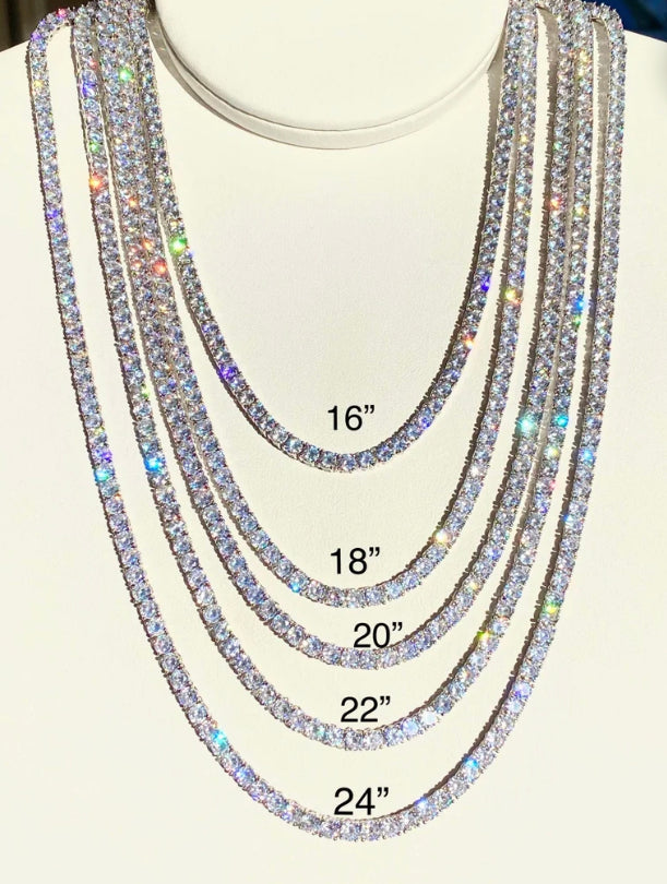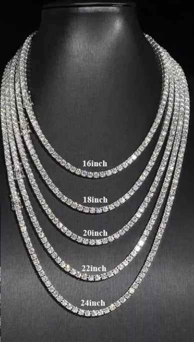 Add a touch of luxury and sophistication to your jewelry collection with our unisex Moissanite Sterling Silver Tennis Chains and Bracelets. Available in various sizes ranging from 2mm to 6mm, these pieces are designed to suit any style and occasion, providing a perfect blend of elegance and brilliance.