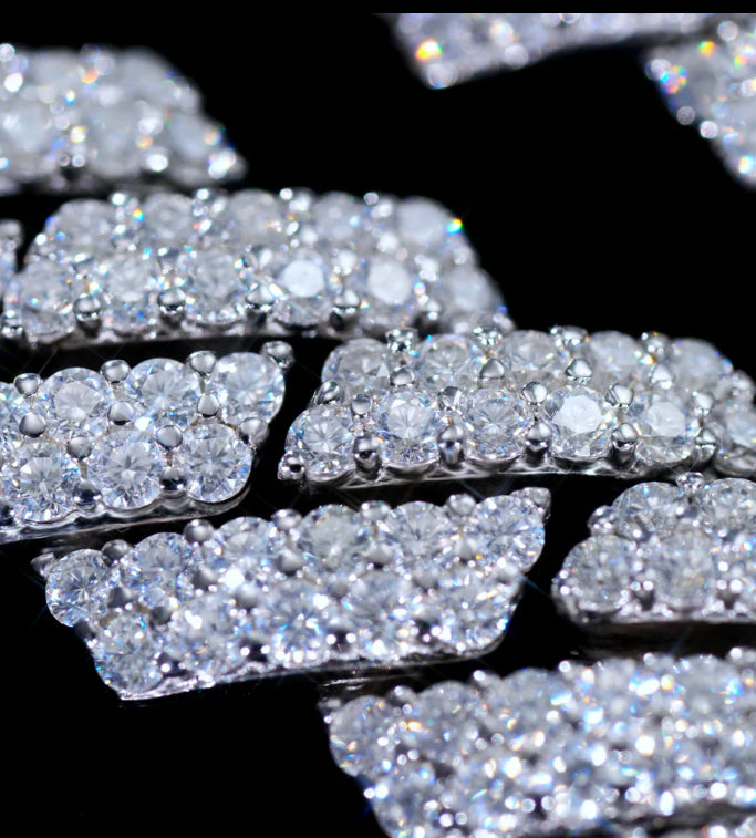 Outshine the crowd without breaking the bank. This premium Cuban link chain is fully iced out with VVS1 clarity moissanite stones – giving you the same jaw-dropping shine as real diamonds, at a fraction of the cost.